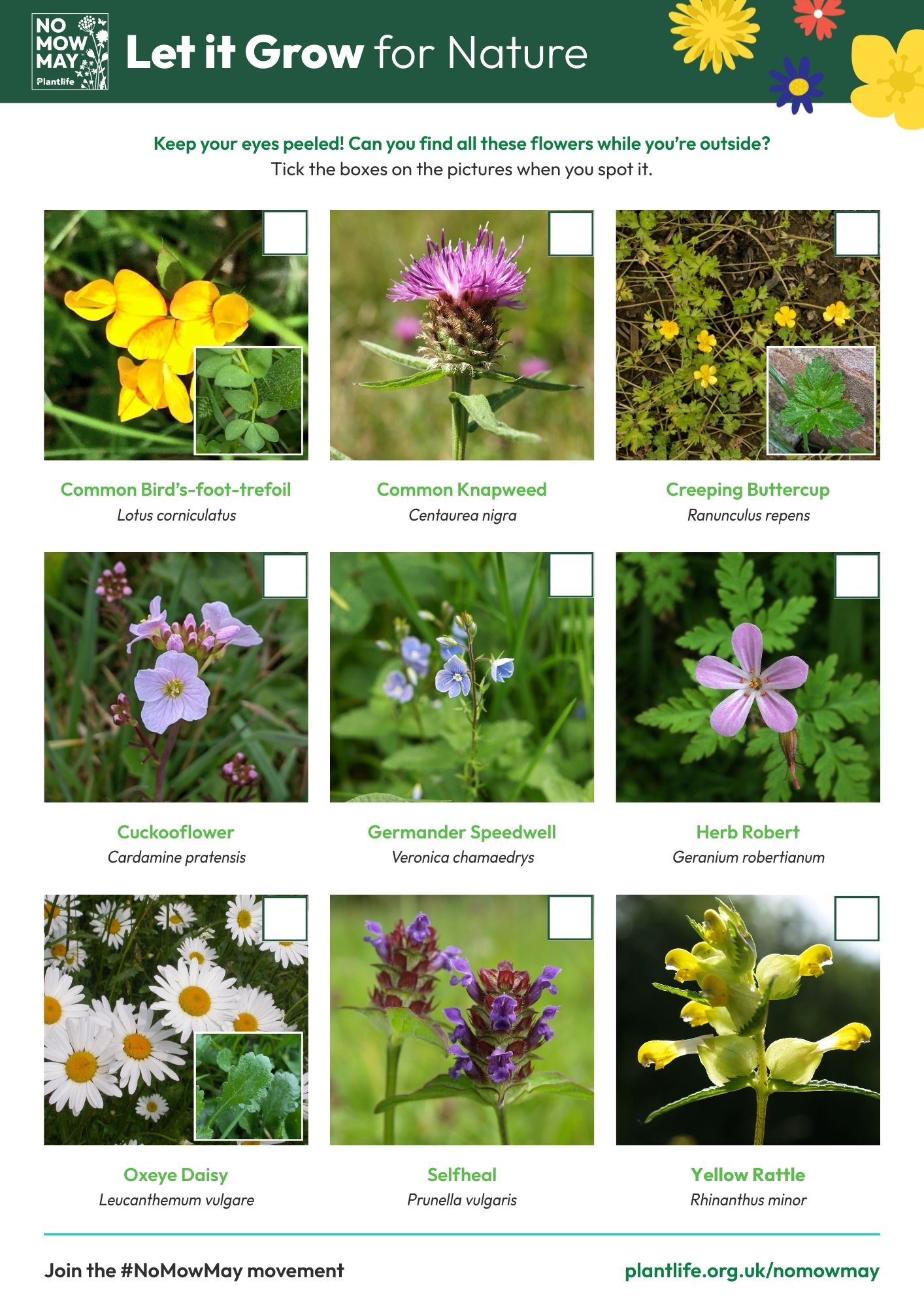 Download the No Mow May wildflower spotter sheet here